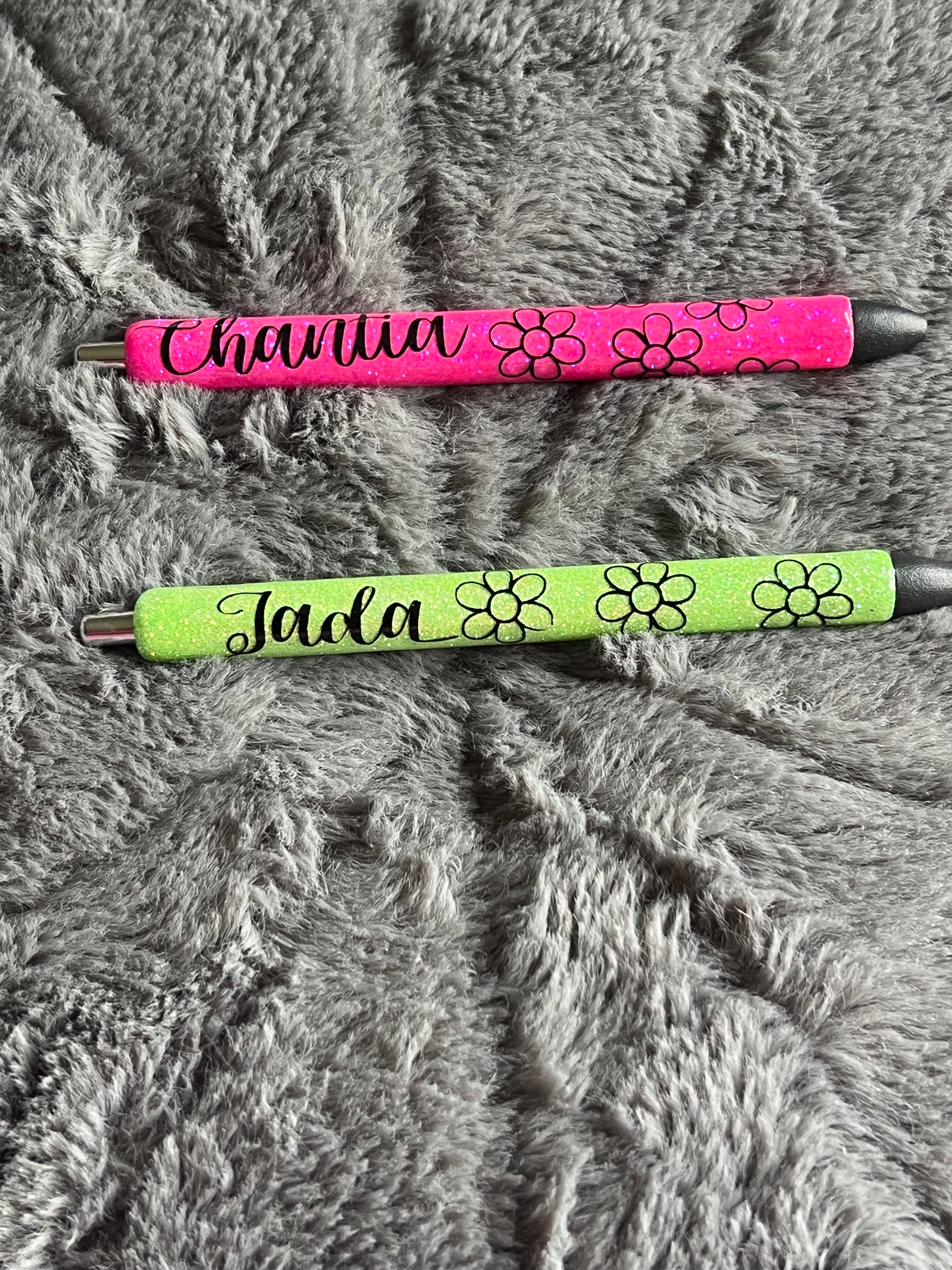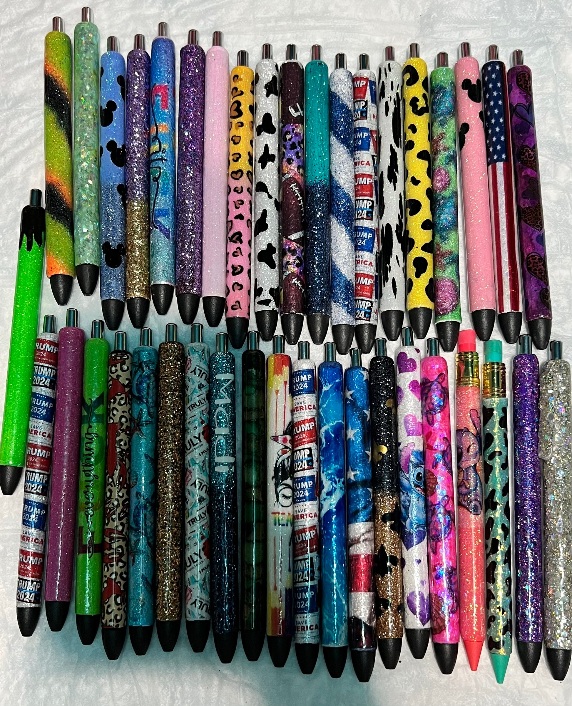 Each pen is tailored to your personal style, with a variety of designs ranging from glittery to cow print to adorable characters. For added security against pen thieves, I can personalize it with your name.